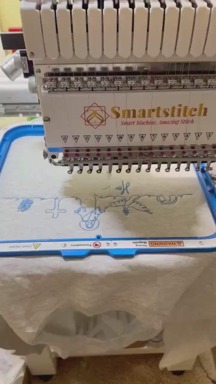 The design is shown embroidered with blue thread on a Gildan sweatshirt, but you can fully customize your thread color to make it your own.