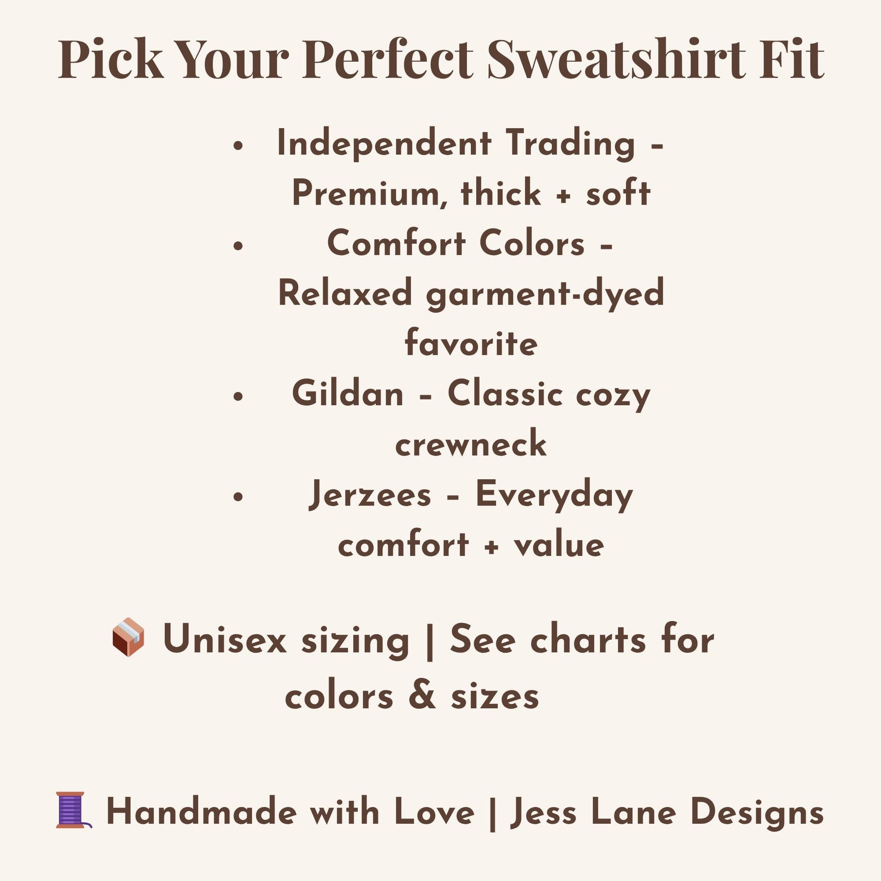 ✨ Stitched on our cozy red Gildan sweatshirt (also available in Comfort Colors, Jerzees & Independent Trading).